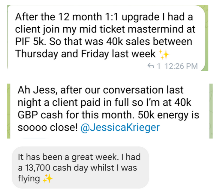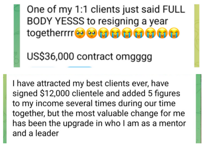 She went from maxing out at $10,000 months with clients she had outgrown and offers she was getting bored of, to consistent $30,000 - $50,000 cash months while attracting the best clients she has ever worked with.