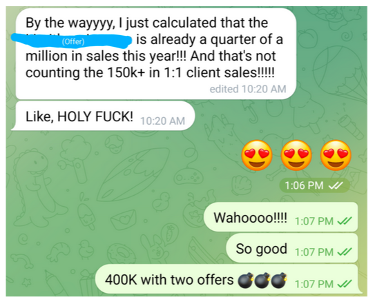 - You’ve made 6 or multi-6-figures 👉🏻but every high ticket sale feels like it takes such a long time, and you’re working hard for each individual sale. You’re ready to be the one who has people asking for $20,000 - $60,000 offers even when you’re not talking about them